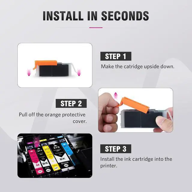 Allwork Compatible Ink Replacement for Canon PGI-270XL CLI-271XL 15Pack (KKCMY)*3 Easy installation STEP 1: STEP 2 STEP 3 Tips Quality Product