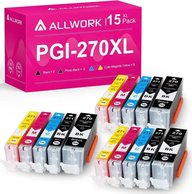 Allwork PGI-270XL CLI-271XL ink cartridge with the latest updated chips, provide same performance as OEM, and compatible with Canon Pixma TS5020 TS6020 TS8020 TS9020 MG5720 MG5721 MG5722 MG6821 MG6820 MG6822 MG7720 MG6800 MG5700 Inkjet Printer