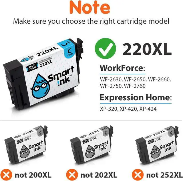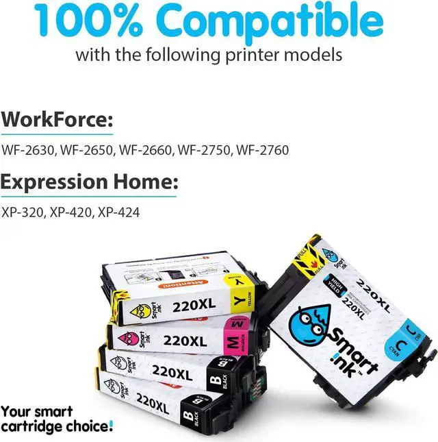 4.3 out of 5 starsSmart Ink Remanufactured Ink Cartridge Replacement for Epson T220 220XL 220 XL (2 Black, C/M/Y 5 Combo Pack) to use with Workforce WF-2630 WF-2650 WF-2750 WF-2760 Expression Home XP-320 XP-420 XP-424
