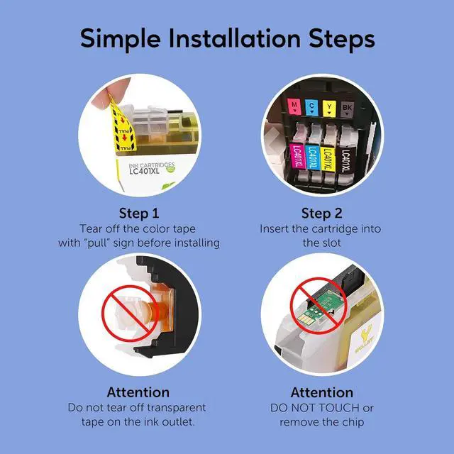 Our LC401XL Ink Cartridges Advantage: Latest Chips | Two-year-war ranty | Fr ee exchange for defective cartridge.