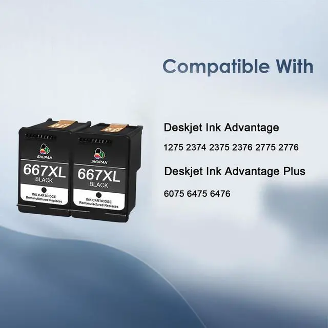 FOR HP 667XL BLACK INK CARTRIDGES COMBO PACK COMPATIBLE PRINTERSDeskjet Ink Advantage 1275 2374 2375 2376 2775 2776, Deskjet Ink Advantage Plus 6075 6475 6476 printers