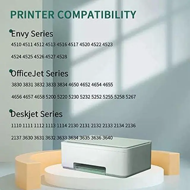 Item Descriptions PFKink is a mature professional inkjet & Toner brand delivering quliaty and cost-less remanufacturfed ink cartridges for home, office small business, large business and organisation use all over the world. Every PFKink 63 Black ink cartridges has been refurbished by a factory with a 12 step strict process, which ensures that the quality nearly meet the same standards as its OEM ink cartridges. COMPATIBLE PRINTERS: OfficeJet Series: OfficeJet 3830 OfficeJet 4652 OfficeJet 4658 OfficeJet 3831 OfficeJet 4654 OfficeJet 5255 OfficeJet 3832 OfficeJet 4655 OfficeJet 5258 OfficeJet 3833 OfficeJet 4655 OfficeJet 3834 OfficeJet 4656 OfficeJet 4650 OfficeJet 4657 DeskJet Series: DeskJet 1110 DeskJet 1111 DeskJet 3633 DeskJet 1112 DeskJet 2130 DeskJet 3634 DeskJet 2131 DeskJet 2132 DeskJet 3635 DeskJet 2133 DeskJet 2134 DeskJet 3636 DeskJet 2136 DeskJet 3630 DeskJet 3637 DeskJet 3631 DeskJet 3632 Envy Series: Envy 4510 Envy 4517 Envy 4527 Envy 4511 Envy 4516 Envy 4528 Envy 4512 Envy 4520 Envy 4513 Envy 4522 Envy 4523 Envy 4524 Envy 4525 Envy 4526 How to install 1. Remove the protective cover before installing 2. Tear off the plastic tape. 3. Insert the ink cartridge into your printer Noted: Please don't touch the chip with your hands. Pacage included: Pack of 2 Remanufactured HP 63 black ink cartridges