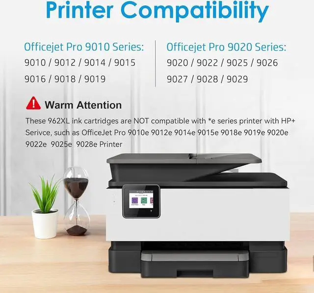 Warm Attention: These 962xl 962 xl ink cartridges are NOT Compatible with *e Series Printers with HP+ Service (Such as OfficeJet Pro 9015e 9025e 9018e 9012e 9010e 9014e 9019e 9020e 9022e 9028e Printer)