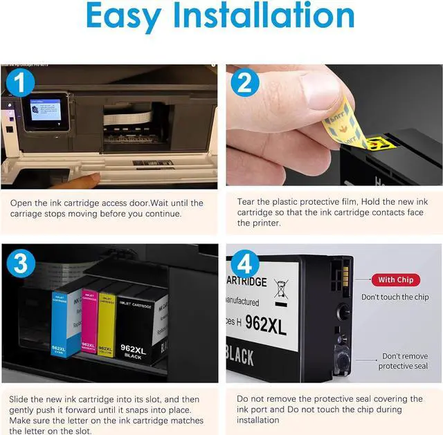 Product Name: Valinkso Compatible for HP 962 XL Black,Cyan,Magenta,Yellow Ink Cartridges (4-pack) Package Contents: