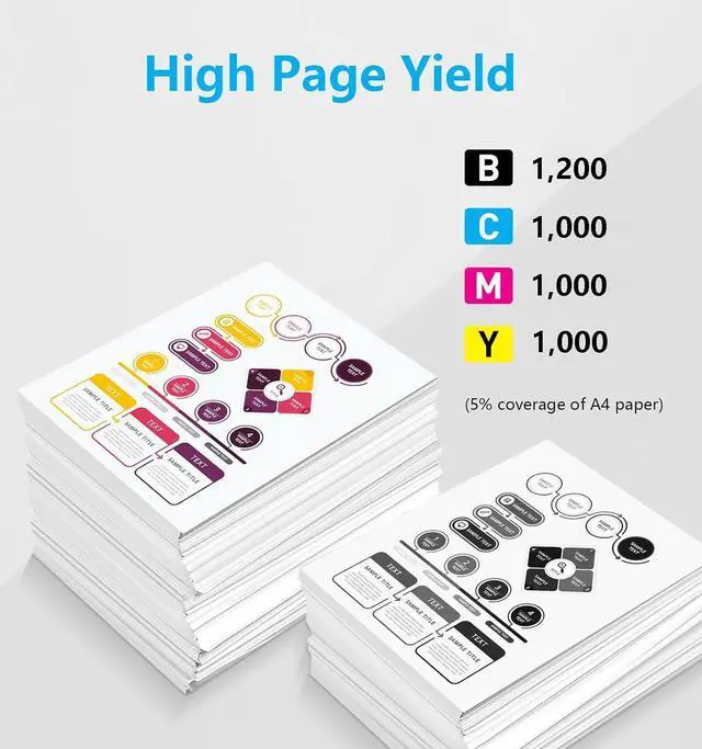 High Page Yield: Up to 1,200 Pages Per Black Ink Cartridge, Up to 1,000 Pages Per Cyan/Yellow/Magenta Ink Cartridge (5% Coverage of A4 Paper)