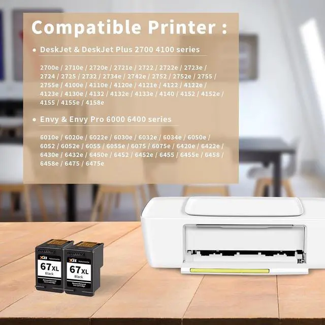 XJI 67XL Remanufactured Black Ink Cartridges(2 Pack) Replacement Ink 67 XL, for Deskjet Plus 2755 2755e 4100e 4152 4155 4155e Envy Pro 6020e 6052 6055e 6075 6452e 6455 6455e 6458 6458e Printer