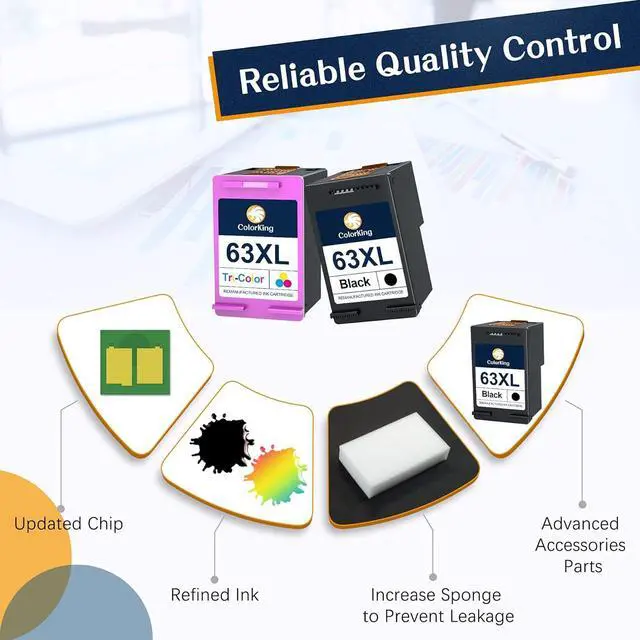 ColorKing Remanufactured Replacement for HP 63XL 63 XL HP63XL HP63 Ink Cartridges (This is not an OEM product)