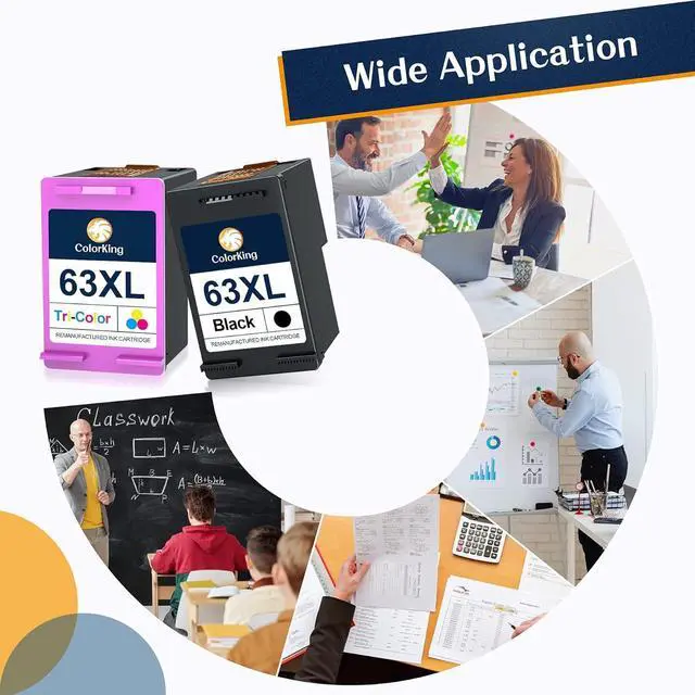 Package Contents: 2 Pack Remanufactured Ink Cartridge Replacement for HP 63XL 63 XL HP63XL HP63 ink (1 Black, 1 Tri-Color)