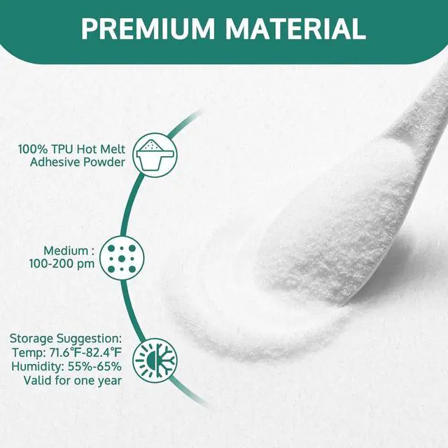 Washable & Durable - With excellent bonding, waterproof and flexibility, the hot melt adhesive powder can resistant to long-time wash and keeps textiles' printings away from crack and deformation, even when someone pulls or twists the T-shirts.