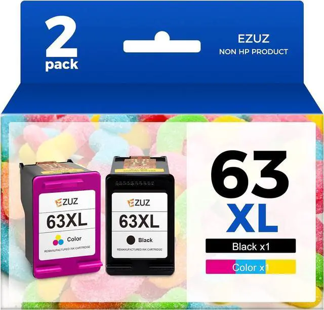 EZUZ Remanufactured Ink Cartridge Replacement 63XL 63 XL Combo Pack OfficeJet 3830 4650 5255 Envy 4520 Printer (1 Black 1 Tri-Color)