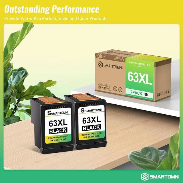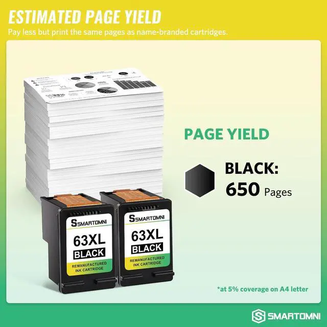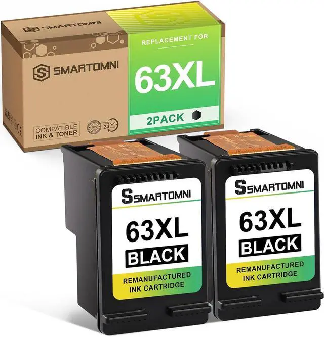 Package includes 2 pack of S SMARTOMNI Remanufactured HP 63 63XL ink cartridges(Display Ink Level - 2 F6U64AN Black).
