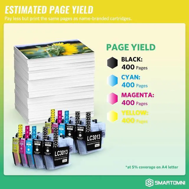 LC3013 LC3011 S SMARTOMNI Compatible Ink Cartridge Replacement for Brother LC 3013 LC 3011 Ink Cartridge Color 10-Pack (4K2C2M2Y) Set for Brother MFC-J491DW MFC-J 497DW MFC-J 690DW MFC-J895DW Printer
