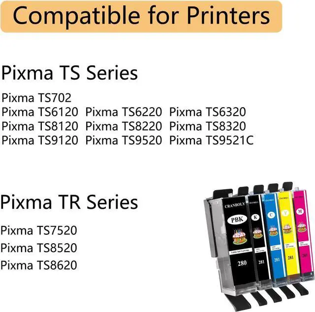 CRANBOLY 280XL 281XL 280 XL 281 XL Ink Cartridges for C A K E Printer Work with PIXMA TS6120 TS6220 TS6320 TS8120 TS8220 TS8320 TR7520 TR8520 TR8620 TS9120 TS9520 TS9521C TS702 Printer