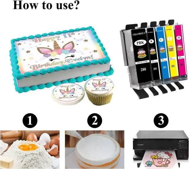 Wide ApplicationCRANBOLY 280XL 281XL Ink Cartridges use with Icing Sheets, Wafer Paper, Fondant Paper, Chocolate Transfer Sheet. Perfect for birthday decorations and Christmas, weddings, annual parties.
