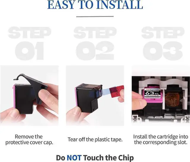 INKCLOUD ink cartridges deliver high-quality prints,so you can use them to print whatever your need, including photos, magazines, flyers, documents, recipes, and much more. Make working at home or office more easier. Excellent Printing Effect: True to color Sharp Text Nest Numbers Smooth Line Vivid Image Fade-resistant Product Specification: What's in box: 2× 63xl Black ink cartridges 1× 63xl Color ink cartridge 1× User's manual Instant Recognition Perfect fit the following Printers: HP OfficeJet Series OfficeJet 3830 OfficeJet 3831 OfficeJet 3832 OfficeJet 3834 OfficeJet 4650 OfficeJet 4652 OfficeJet 4654 OfficeJet 4655 OfficeJet 4656 OfficeJet 4657 OfficeJet 4658 OfficeJet 5200 OfficeJet 5255 OfficeJet 5258 OfficeJet 5264 HP Envy Series Envy 4510 Envy 4512 Envy 4513 Envy 4516 Envy 4517 Envy 4520 Envy 4522 Envy 4524 Envy 4525 Envy 4526 Envy 4527 Envy 4528 HP Deskjet Series Deskjet 1110 Deskjet 1111 Deskjet 1112 Deskjet 2130 Deskjet 2131 Deskjet 2132 Deskjet 2133 Deskjet 2134 Deskjet 3630 Deskjet 3631 Deskjet 3632 Deskjet 3633 Deskjet 3634 Deskjet 3636 Deskjet 3637 Advantages: * High Page Yield * Premium quality ink * Latest smart Chip * Displays accurate ink level * Environmentally materials * individual packs * 100% Compatibility
