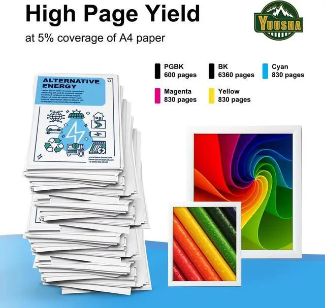 Page Yield: 6,360 Pages per 281XXL small black ink cartridge, 830 pages per 281XXL color ink cartridge (Cyan, Magenta, Yellow), 600 pages per 280XXL big black ink cartridg (Cartridge at 5% coverage)