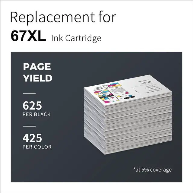 Remanufactured Ink Cartridge Replacement for HP 67 XXL 67XL (Black, Tri-color)