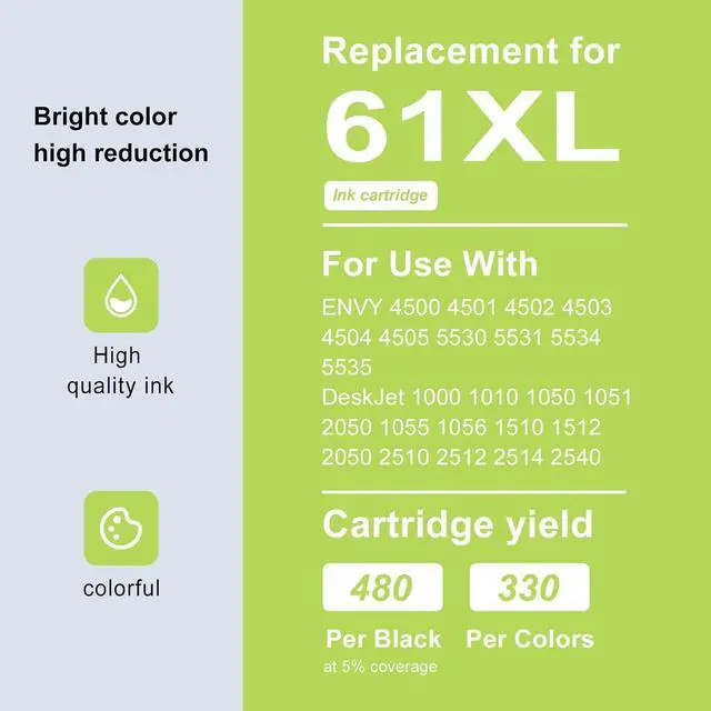 High yield Color(Cyan/Maenta/Yellow) 61XL ink cartridge prints up to 330 pages