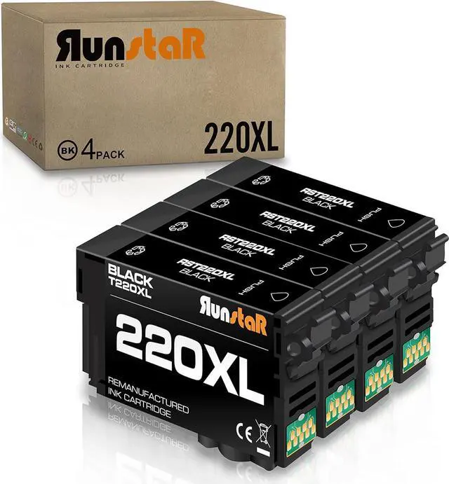 Products Details: 4 Pack Run Star Remanufactured Epson 220 XL 220XL T220XL T220XL120 Ink Cartridges (4 Black)