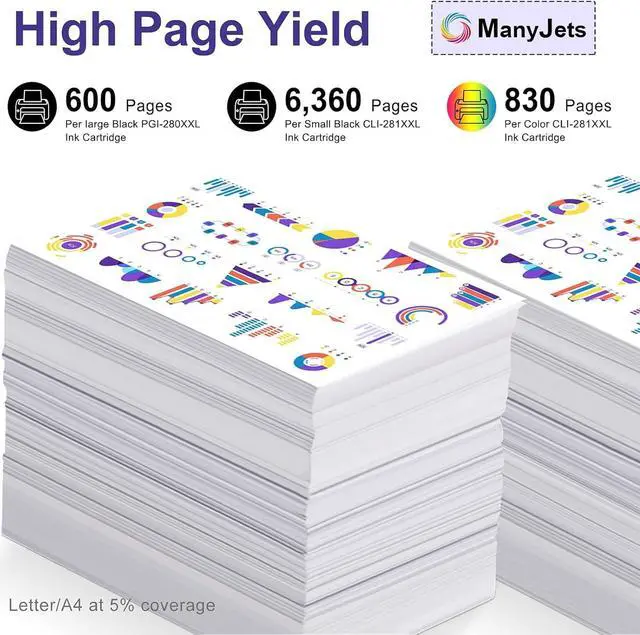ManyJets Compatible Ink Cartridge Replacement for Canon PGI-280XXL CLI-281XXL (NON-OEM)