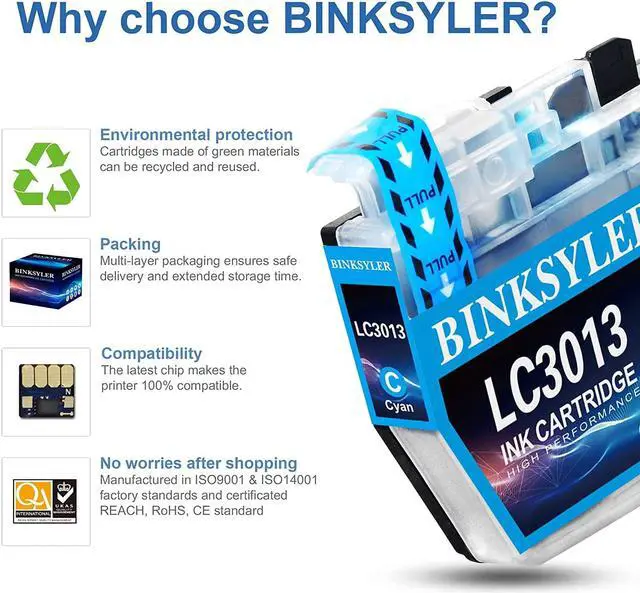 LC3013 ink cartridges use green pollution-free and harmless materials to protect our living environment, and our ink cartridges are manufactured in accordance with SO9001, ISO14001, and have passed CE, RoHS, REACH, SGS, GMC standard certification.