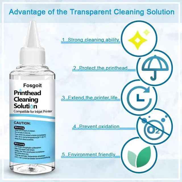 Printer head Cleaning solution for Epson HP Canon Brother Lexmark Printers: