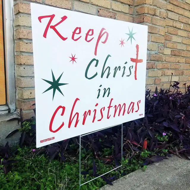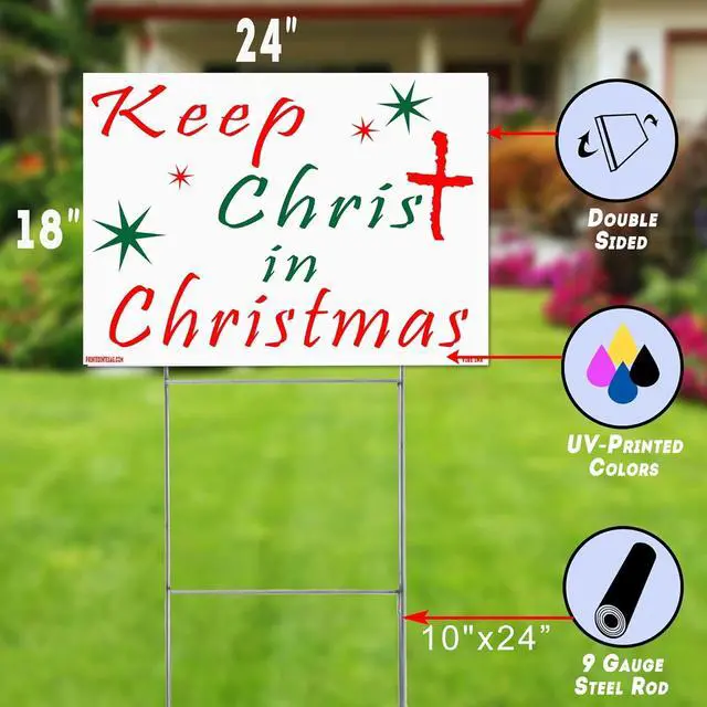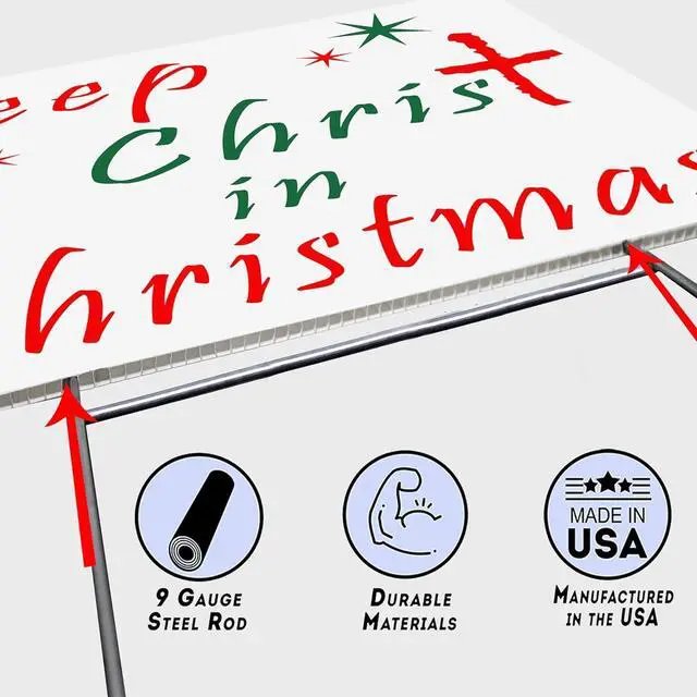 "Keep Christ in Christmas" yard sign kit made by Vibe Ink. Designed to showcase your love for the Christmas holiday season with Jesus Christ!