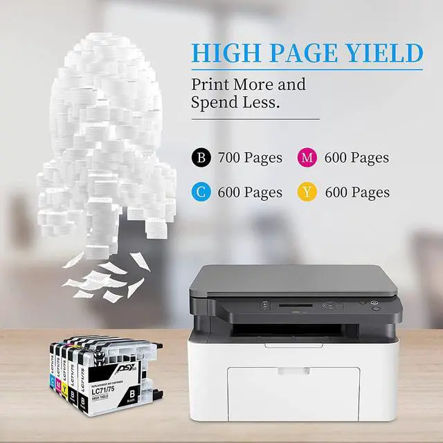 Compatible with: Brother DCP-J525W, J725DW, J625DW, J925DW, J925N, J725N, J525N, MFC-J425W, J280W, J430W, J435W, J825DW, 835DW MFC-J6510DW, J6710DW, J6710CDW, J6910DW, J6910CDW, J5910CDW, J955DN, J825N, J705D/DW Replacement of: Brother LC71/75/79XL Ink Cartridges Package Includes: 5*BLACK, 3*Cyan, 3*Magenta, 3*Yellow (Total: 14-pack) Approximate Page Yield: 600 pages per Black, 600 pages per color at 5% coverage of A4 sheet Perfect your Print and Reduce your Cost: Sharp, Solid text and Crips Graphics; High Yield and Great Price