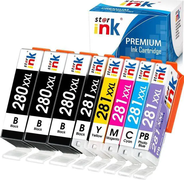 Compatible with Canon Pixma TS9120 TS9100 ink Pixma TS8120 TS8100 ink Pixma TS8220 TS8200 ink TS8222 Pixma TS8320 TS8300 TS8322 ink 6-Color Printer Pixma TR7520 TS7500 tr7620 tr7600 Pixma TR8620 TR8600 tr8620a Pixma TR8520 TS8500 Pixma TS6120 TS6100 Pixma TS6220 TS6200 Pixma TS6320 TS6300 Pixma TS9520 TS9521c TS702 ts702a printer. Starink compatible replacements for Canon 280 281 ink cartridges combo