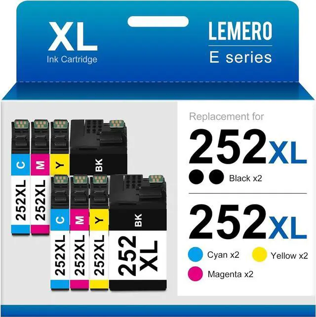 Contents: 2 x Black 252XL ink, 2 x Cyan 252XL ink, 2 x Yellow 252XL ink, 2 x Magenta 252XL ink