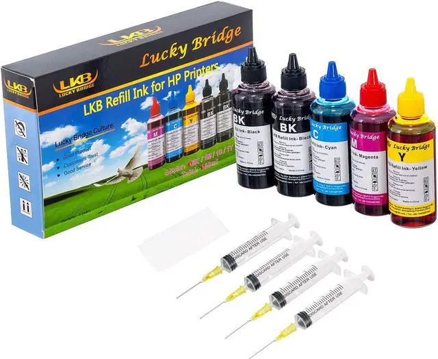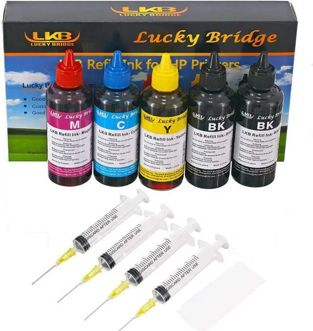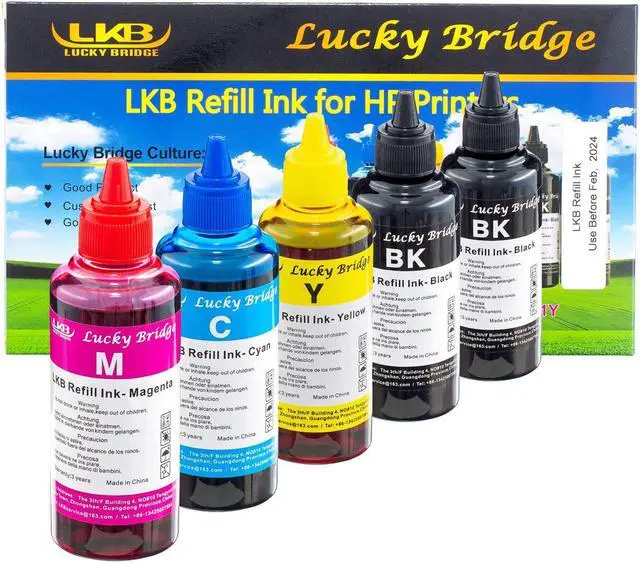 LKB (Lucky Bridge) dye ink designed to prevent corrosion and clogging of printhead and offer the best print reliability. The special ink is just ONLY use and compatible for HP printers. With high-purity ink, it would not block the print head. Easy to operate.