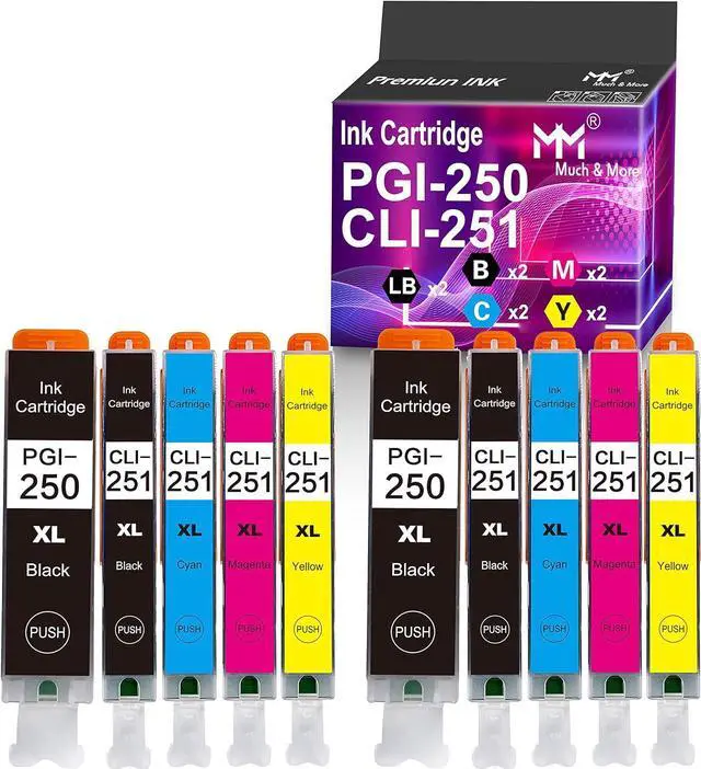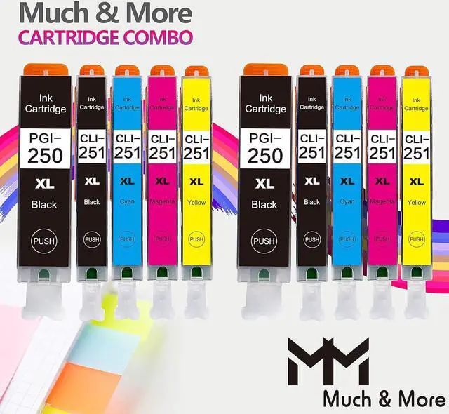 Product Name: MM MUCH & MORE Compatible Toner Cartridge Replacement for Canon PGI-250XL CLI-251XL (2 x PGI-250XL Large Black, 2 x CLI-251XL Small Black, 2 x CLI-251XL Cyan, 2 x CLI-251XL Magenta, 2 x CLI-251XL Yellow)
