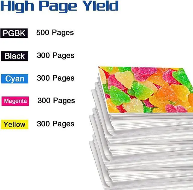 High Page Yield (5% coverage): Up to 500 pages per Black Cartridge & 300 pages per Color Cartridge (5% coverage)