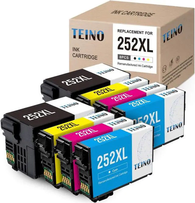 End downtime with these high-yield black and color ink cartridges. This eight-pack provides everything your printer needs in one pack, so you'll never have to look for different cartridges. Each black TEINO 252XL cartridge yields up to 1,100 pages, while each color 252XL cartridge provides up to 1,100 pages.
