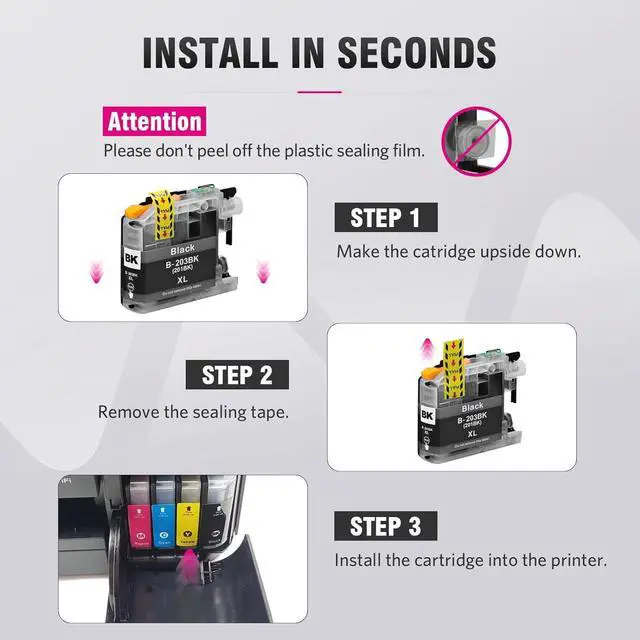 Allwork Compatible Ink Replacement for Brother LC203 12PK(2 Sets+4 Black) STEP 1: STEP 2 STEP 3 Tips