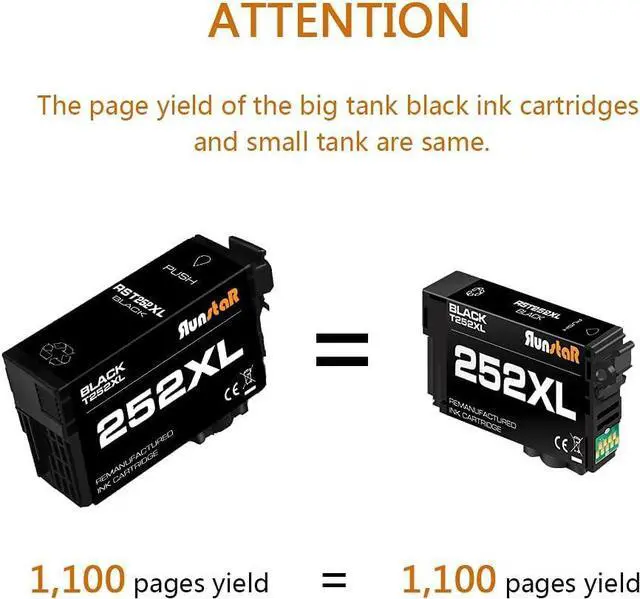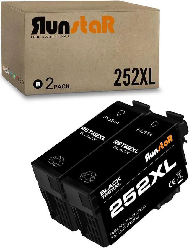 Products Details: 2 Pack Run Star Remanufactured Epson 252 T252 252XL T252XL Ink Cartridges (2 Black)
