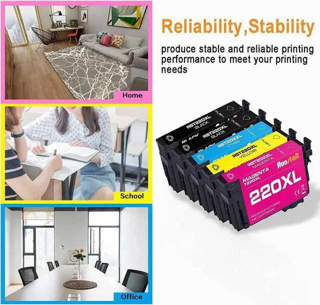 Products Details: PicView Remanufactured Epson 220 XL 220XL T220XL Ink Cartridges (2 Black, 1 Cyan, 1 Magenta, 1 Yellow)