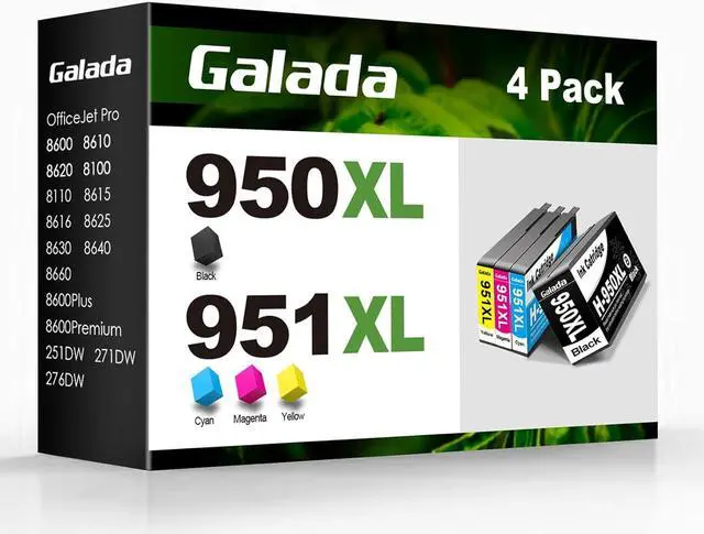 Galada Compatible Ink Cartridges Replacement for HP 950XL 951XL Combo Pack for Officejet Pro 8600 8610 8620 8100 (1 Black, 1 Cyan, 1 Magenta, 1 Yellow, 4 Pack)
