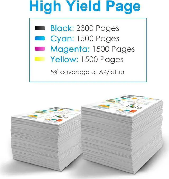 Page Yield : 950 XL is 2300 Pages per cartridge, 951XL is 1500 Pages per cartridge at 5% coverage.