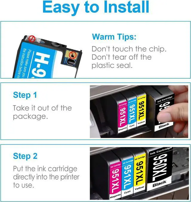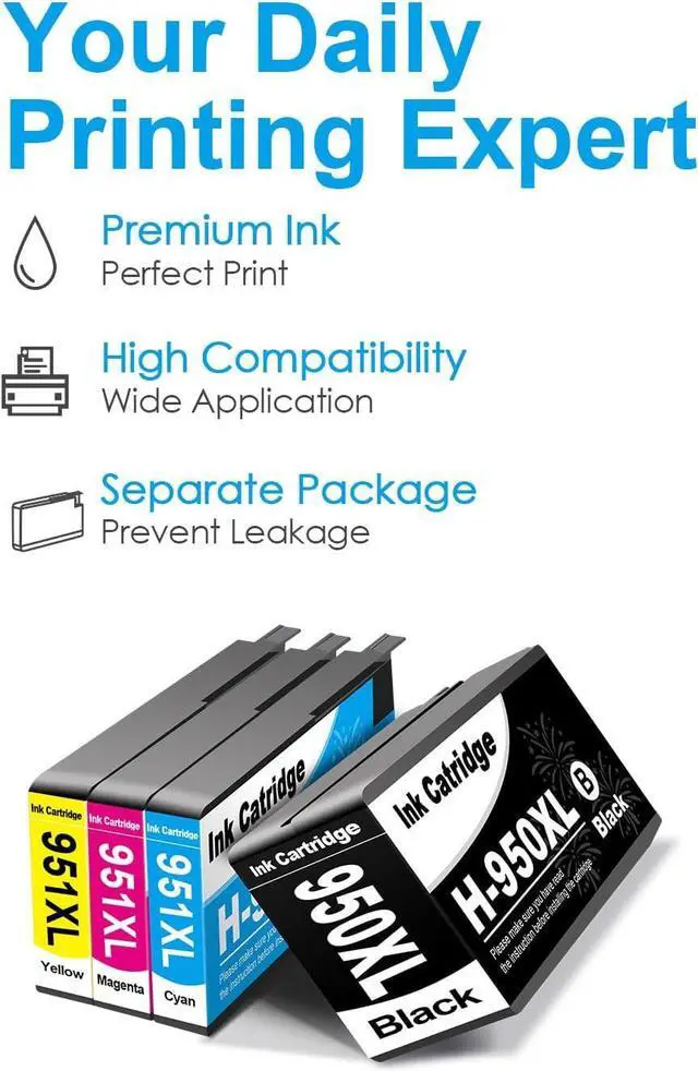 Contain : 1 x 950XL Black, 1 x 951XL Cyan, 1 x 951XL Magenta, 1 x 951XL Yellow Ink Cartridges (Total 4 Pack)