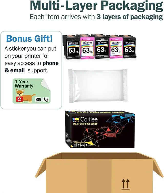 - Contents: remanufactured cartridges 63XL ( 3 Black, 2 Color)