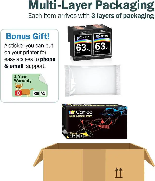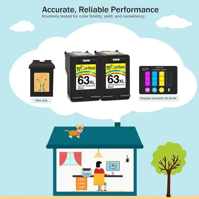 - Contents: remanufactured cartridges 63XL ( 2 Black)