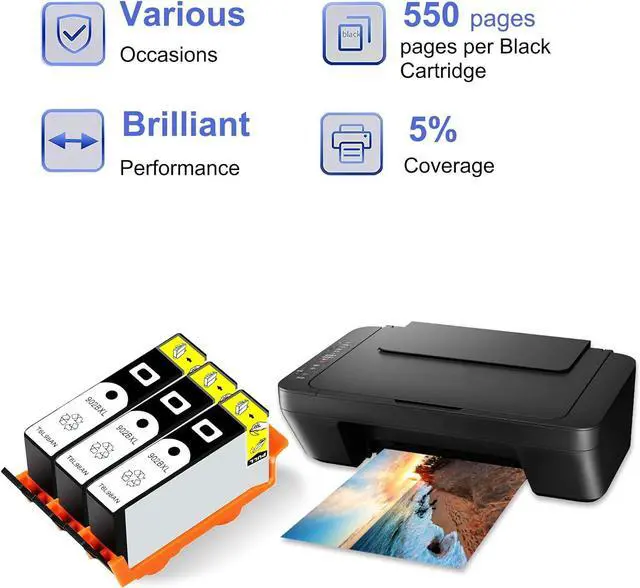 Page Yield: Approximately Black: 550 Pages per ink cartridge at 5% coverage; (???XL??? ink cartridges fit and work like the standards with more ink capacity)