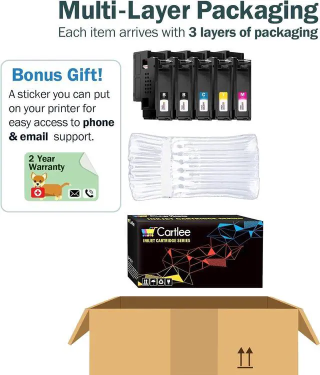 - Cartridges come filled with a new generation chip and work with all new printers. We offer a hassle free money back guarantee.