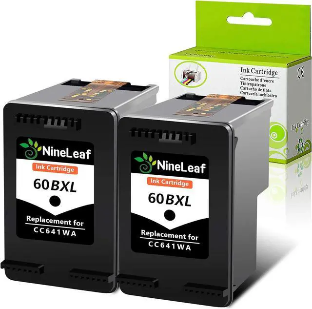 NineLeaf Remanufactured CC641WA Black Ink Cartridge Replacement 60XL 60 XL PhotoSmart C4640 C4650 C4680 Printers High-Yield (600 Pages, Ink Level Indicator) 2 Pack