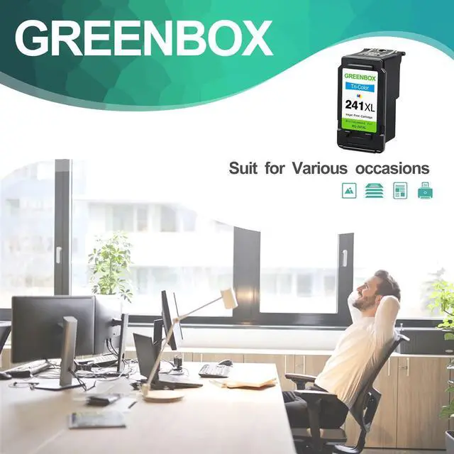 The ink cartridge you are looking for Brand: GREENBOX Content: Remanufatured ink cartridge for CL-241XL (1 Tri-Color) Printer Compatibility: Pixma MX472,Pixma MX452,Pixma MX522,Pixma MX532,Pixma MX392,Pixma MG3620,Pixma MG3622, Pixma MX432,Pixma MX512,Pixma MX372,Pixma MX439,Pixma MX459,Pixma MG3522, Pixma MX479,Pixma MG2120,Pixma MG2220,Pixma MG3120,Pixma MG3220 Pixma MG4120,Pixma MG4220,Pixma MG3520,Pixma MG3222. Page yield: 600 Pages per Black, 400 Pages per Color at 5% coverage. Top quality is Better quality GREENBOX printers ink cartridge for PG-240XL CL-241XL: : 1, We use imported ink: Bright color Saturation and exorbitant fidelity 2, Strictly test Leakproofness 3, Compatibility 4, Each ink cartridge is methodically tested in our state of the art facility to ensu re full functionality with its compatible printer model. 5, The use of ours ink cartridges and supplies does not void your printer's warranty. NOTE: 1, Please confirm your Printer Model before placing order. 2, Please tear the tape off before you install the ink cartridges.