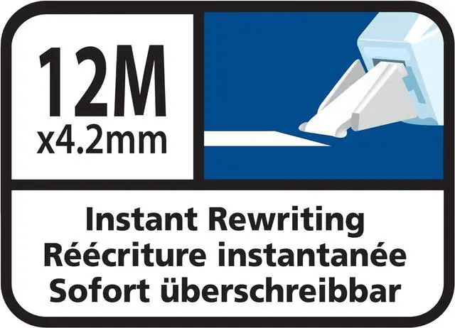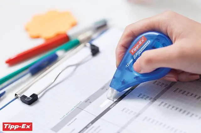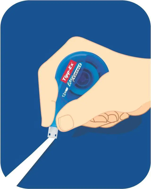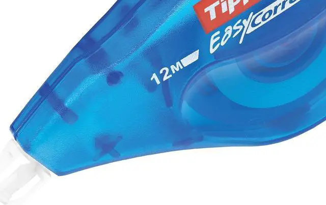 Extra long correction tape with a tear-resistant polyester film with a side-dispensing mechanism so you can see what you are correcting
