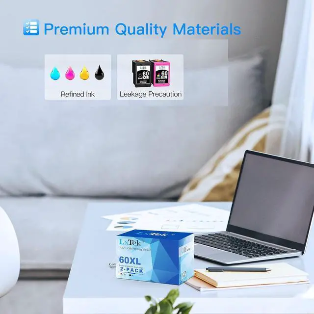 LxTek Remanufactured 60XL ink cartridges are recycled from the original 60XL ink cartridge and undergone a rigorous process of cleaning, restoration and refilling. Advantages for this remanufactured item: Printing performance is almost the same as genuine OEM ink cartridge at 1/3 of the price. Cartridges are refurbished by our own recycled technology, which provide you with user-friendly and superb printing experience. Exclusive high quality ink ensures lasting printing results. Convenient and cost-effective for daily use such as school, work, and home printing. Can be recognized by your printers and installed easily. Compatible with the following printers: Envy 120, Envy 100, 110, 111, Envy 114; Desk Jet F4580, F4210; Deskjet D2660, D2680; Deskjet D1660; Photosmart C4780, Photosmart D110A, Photosmart C4680 Package Included: 2 pack Leak remanufactured 60XL ink cartridges (1 Black | 1 Tri-color) Cartridge Life: If you print about 30 pages of regular printing documents per week, cartridges will be run out in around 5 months. Please note: Most of customers reflect that our products match perfectly with their printers and become our repeat customers for the excellent and economic ink cartridges. We are thrilled to receive such great reviews from those customers. Our goal is to ensure that everyone has a great experience with this product. Therefore, if you experience ANY issues whatsoever, please contact our customer service team via the Contact Seller option on your order. We will gladly assist you and address all your concerns.