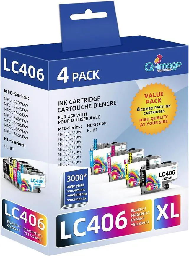 This ItemLC406XL LC406 Ink Cartridges for Brother MFC-J4335DW MFC-J4345DW MFC-J4535DW MFC-J5855DW MFC-J5955DW MFC-J6555DW MFC-J6955DW Inkvestment Tank All-in-One Printer(Black, Cyan, Magenta, Yellow)RecommendationsLC406 Ink Cartridge (with New Chip), Compatible for Brother LC406 LC406BK for MFC-J4335DW MFC-J5855DW MFC-J4535DW MFC-J6955DW MFC-J5955DW MFC-J6555DW MFC-J4345DW, Black Cyan Magenta YellowdummyPalmtree LC406 Compatible 4 Pack Ink Cartridge Set Replacement for Brother LC406 XL LC 406 LC406XL to use with Brother MFC-J4335DW MFC-J6955DW MFC-J5855DW Printer (Black, Cyan, Magenta, Yellow)dummyLinkDocs LC406 Ink Cartridges for Brother Printer Replacement for Brother LC406 LC406XL Compatible with Brother MFC-J4535DW MFC-J4345DW MFC-J4335DW MFC-J5855DW MFC-J5955DW MFC-J6555DW (4 Color) dummyLC406 Ink Cartridges for Brother Printer for Brother LC406 Ink Cartridge Replacement with Brother MFC-J4335DW XL, MFC-J4345DW XL, MFC-J4535DW (4 Packs) dummyGSGSC LC401XL Ink Cartridges Compatible for Brother LC401XL LC401 High Yield Work with Brother MFC-J1010DW MFC-J1012DW MFC-J1170DW Printer (1 Black, 1 Cyan, 1 Magenta, 1 Yellow, 4 XL Pack)