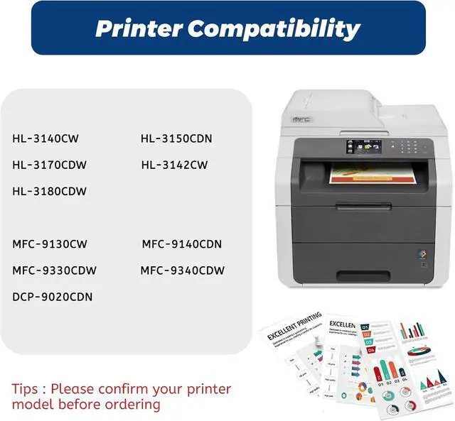 Compatible PrintersCompatible for Brother MFC-9130CW MFC-9130 MFC9130CW MFC-9330CW MFC-9330CDW MFC-9330 MFC9330CDW HL-3170CDW HL-3170 HL-3180CDW HL-3140CW HL-3140 HL3140CW MFC-9340CDW MFC-9340 MFC9340CDW DCP-9020CDN Laser Printer